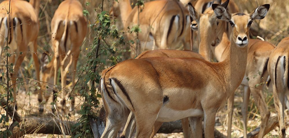 Katavi is home to topis, impalas, hartebeests, elands, waterbucks, and other antelope species that roam freely across the savannah and floodplains. Giraffes browse acacia trees, creating classic African safari scenes. The interplay of herbivores and predators in these open landscapes is a constant spectacle for safari-goers.